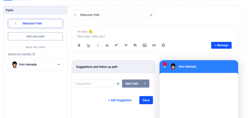You can add another bot path first before adding it as a follow-up path for any suggestion. In this case, you have to click on the “Add Bot Path” in the left section and it will add a path in the list. Now you can use this path as the next path for a suggestion in a different bot path.