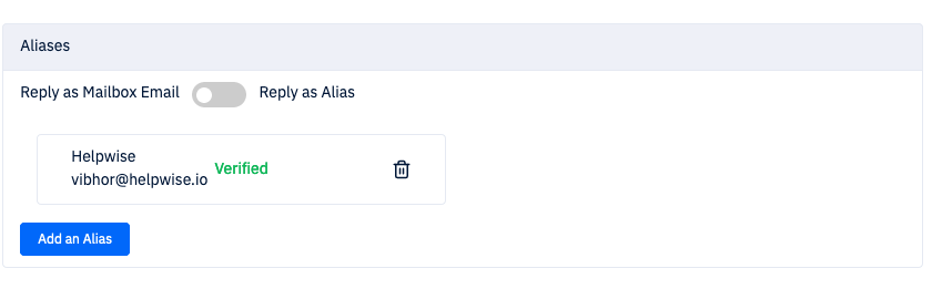 Aliases allow you to use multiple emails in the same shared mailbox. You can create aliases such as support@yourdomain, care@yourdomain for a mailbox such as help@yourdomain. You can choose whether you want to reply as alias or not. Read more about aliases here.