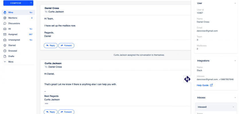 - Open an email from any of the tabs (i.e, mine, assigned, sent, etc.)