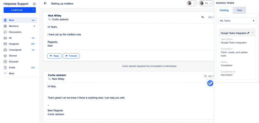 Once you have connected your shared inbox Helpwise account with Google Tasks, you can easily track the event’s information. Here are the steps: