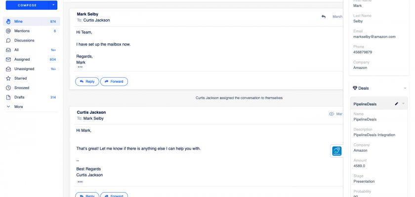 Once you have connected your Helpwise shared inbox with PipelineDeals, you can easily track the information of your contact. Here are the steps to integrate: